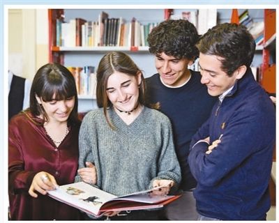 罗马国立住读学校学生正在图书馆翻阅中文书籍。 本报记者 韩秉宸摄