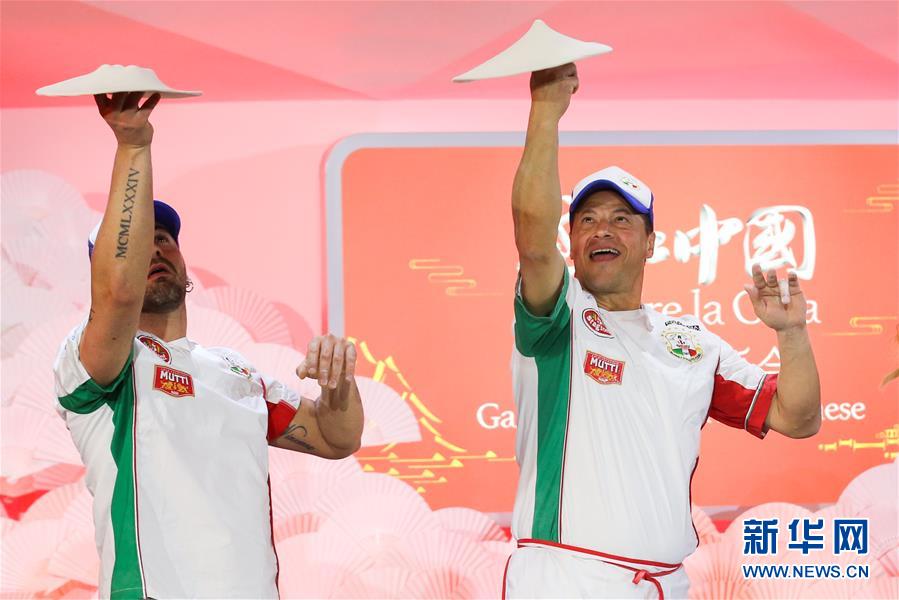 3月21日,在意大利罗马,意大利国家披萨杂技团演员在“感知中国”中意友好音乐会上表演。新华社记者 郑焕松 摄
