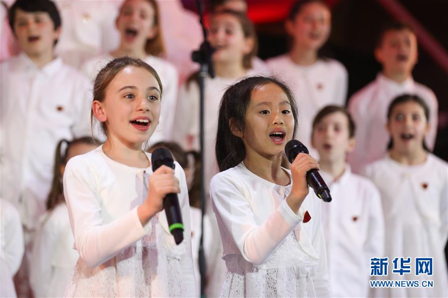 3月21日,在意大利罗马,小演员在“感知中国”中意友好音乐会表演童声合唱《中国花儿》。​ 新华社记者 郑焕松 摄