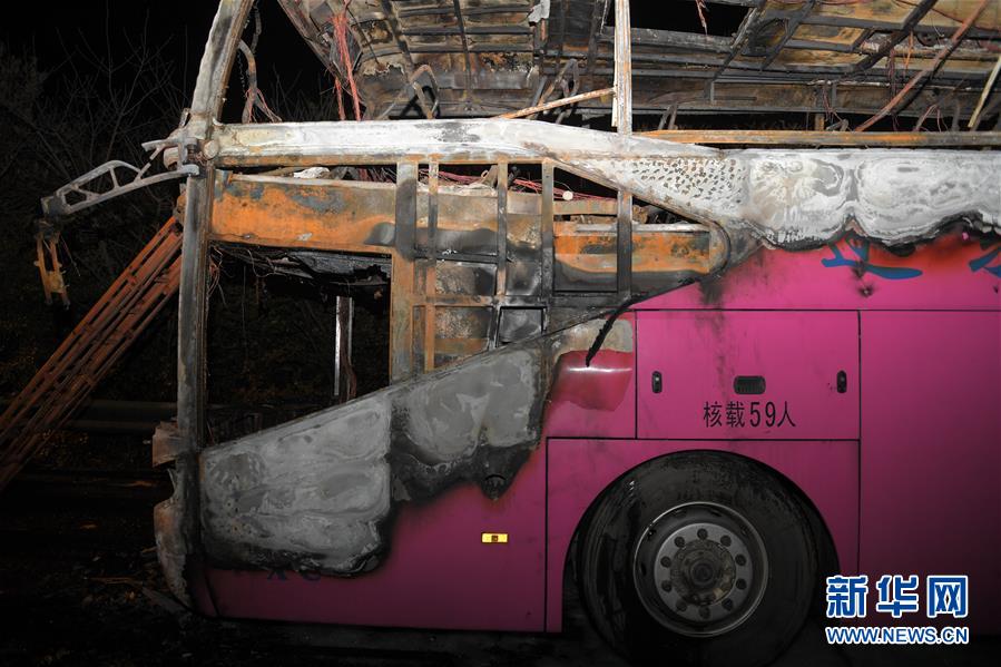 这是事故现场的起火客车局部(3月22日摄)。新华社发(陈泽国 摄)