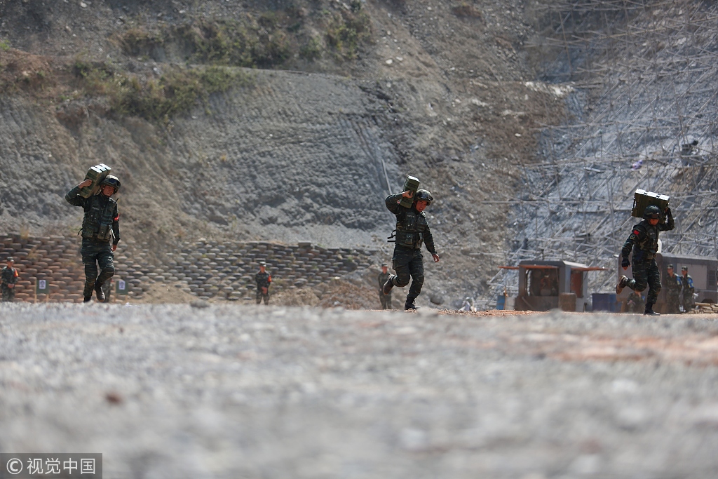 2019年3月23日,武警云南总队,特战扛弹药箱进行奔袭。