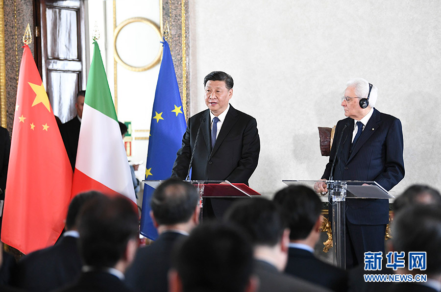 3月22日,国家主席习近平在罗马和意大利总统马塔雷拉一道会见出席中意企业家委员会、中意第三方市场合作论坛、中意文化合作机制会议双方代表。 新华社记者 谢环驰 摄 图片来源:新华网