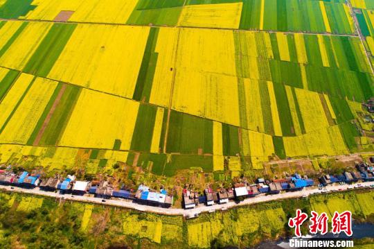 成片的油菜花像给大地铺了层金灿灿的地毯。 熊国涛 摄