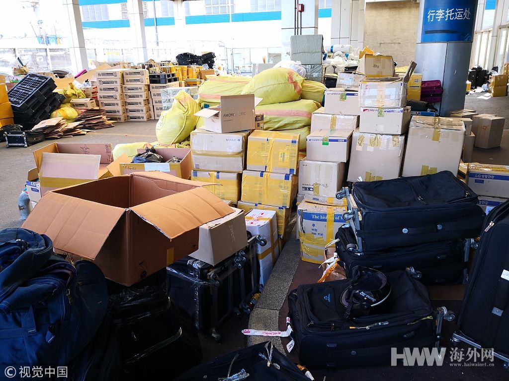 中国游客代购韩品(化妆品),等待登船回国。