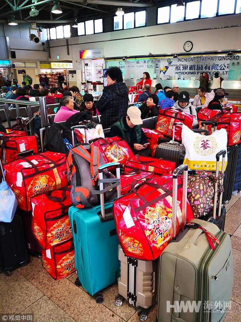 2019年03月22日,韩国仁川港,大批的中国游客满载而归,等待登船回国。