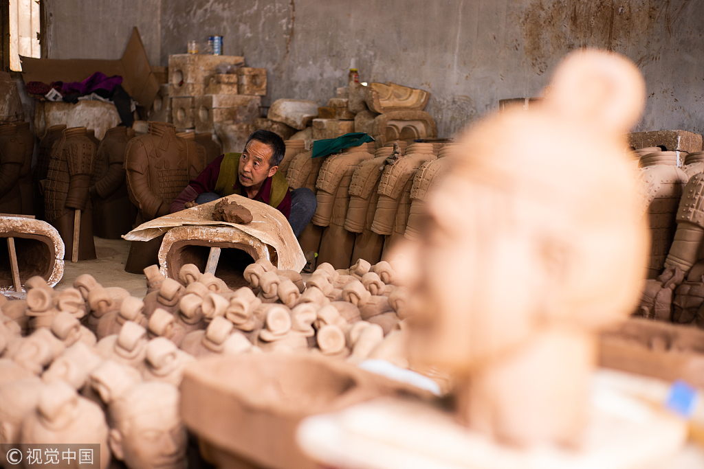 2019年3月23日,西安,正在给兵马俑制模的曹志卓。
