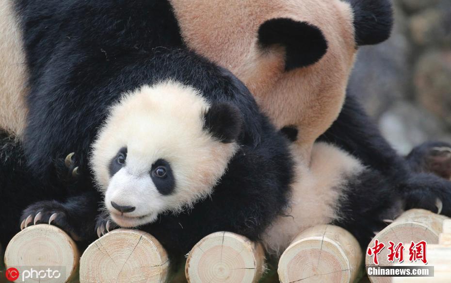 3月25日消息,出生于2018年8月份的旅日大熊猫小“彩浜”(Saihin)和妈妈“良浜”(Rauhin)在日本和歌山白浜野生动物世界内玩耍。这是小“彩浜”首次在户外玩耍和游客见面。