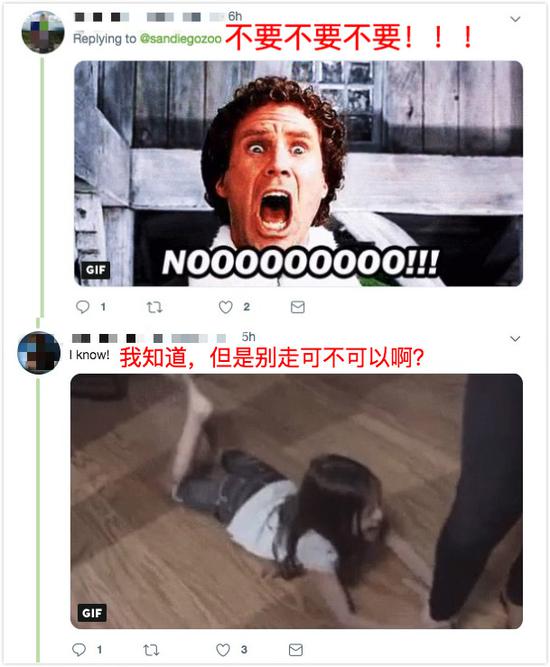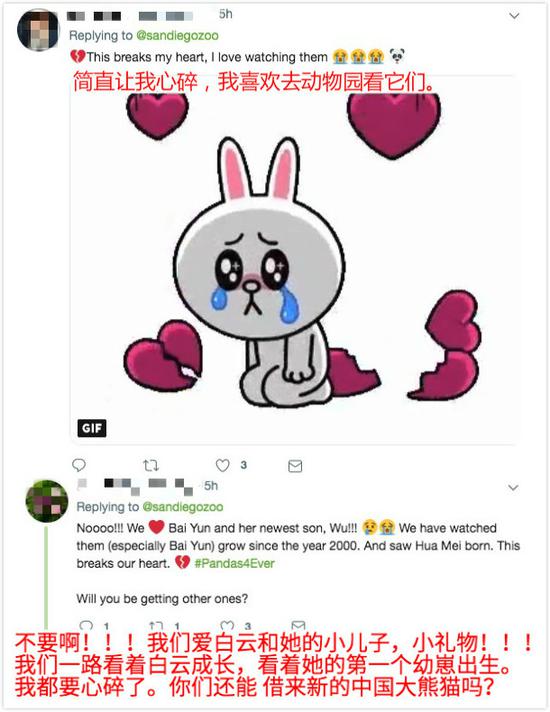 还有美国网友全身写满了拒绝:“不要不要不要……”“别走可不可以啊?”还有网友表示,天涯海角我也随你去,“白云”和“小礼物”回中国了我就去中国看你们。