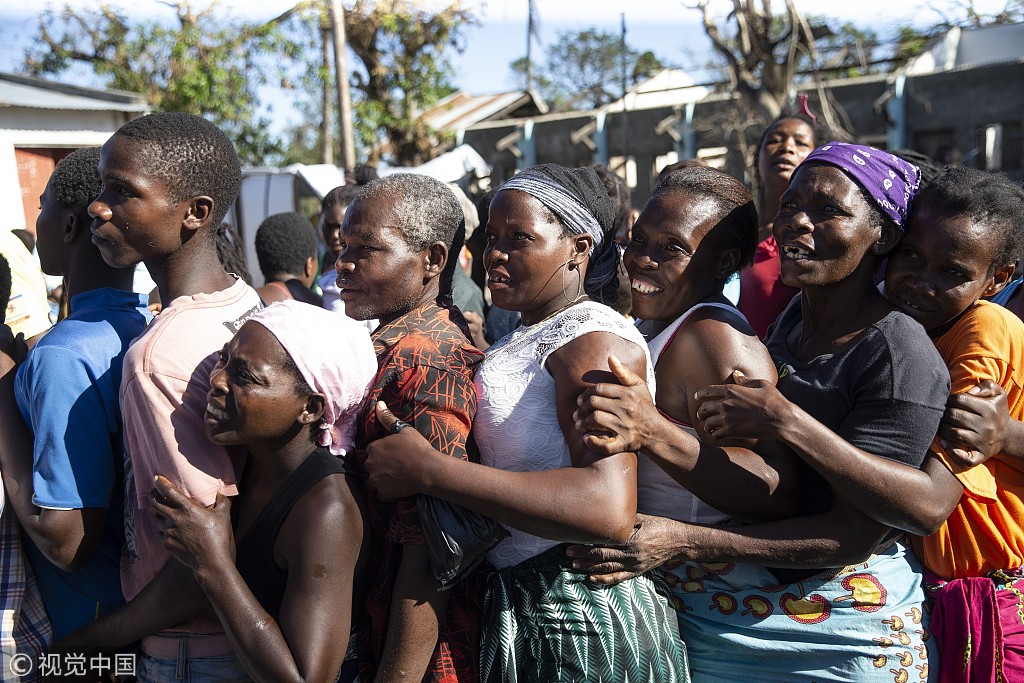 莫桑比克受强热带气旋“伊代”影响持续 灾民排队领取救援物资