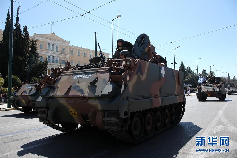 3月25日,在希腊首都雅典,军车车队参加独立日阅兵。 当日,希腊举行独立日阅兵,纪念希腊1821年开始的反抗奥斯曼帝国统治的独立战争。 新华社发(马里奥斯·罗洛斯摄)