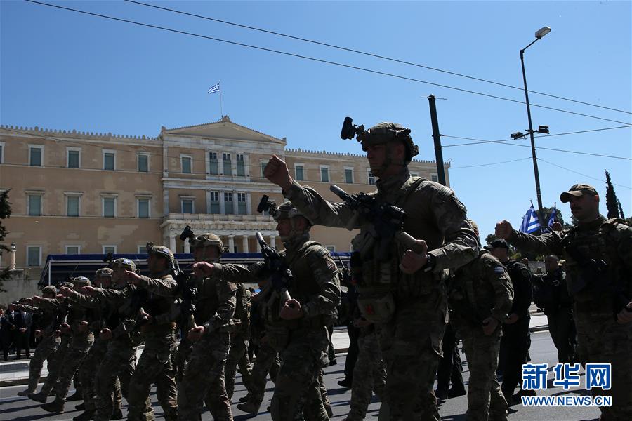 3月25日,在希腊首都雅典,士兵们参加独立日阅兵。 当日,希腊举行独立日阅兵,纪念希腊1821年开始的反抗奥斯曼帝国统治的独立战争。 新华社发(马里奥斯·罗洛斯摄)