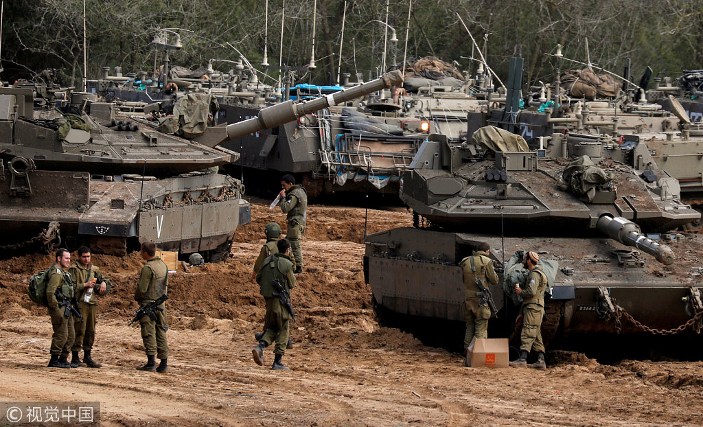 当地时间2019年3月26日,以色列南部与加沙边境,以色列坦克和装甲运兵车在加沙边境附近部署。以色列军队26日继续轰炸加沙地带。巴勒斯坦卫生部当天发表声明说,以军轰炸造成至少10名巴勒斯坦人受伤。