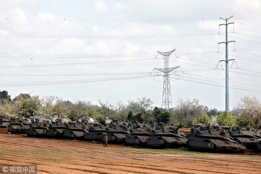 当地时间2019年3月26日,以色列南部与加沙边境,以色列坦克和装甲运兵车在加沙边境附近部署。以色列军队26日继续轰炸加沙地带。巴勒斯坦卫生部当天发表声明说,以军轰炸造成至少10名巴勒斯坦人受伤。