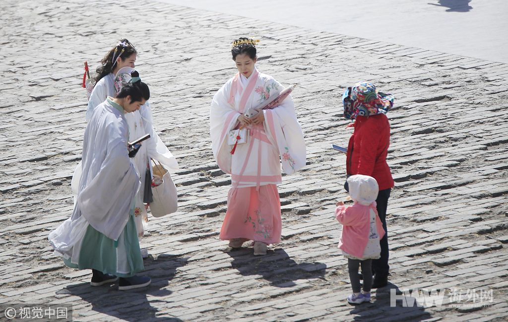 春暖花开之际 北京故宫兴起汉服热