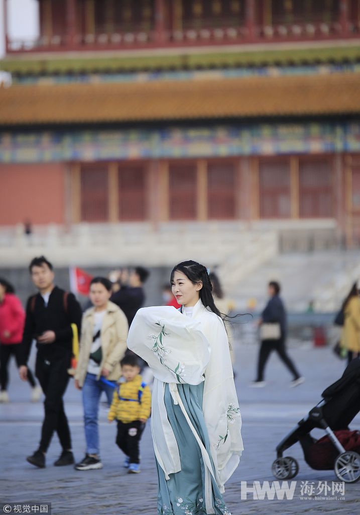 2019年3月31日,北京,仲春时节,春暖花开,身着各种样式汉服的小姐姐在故宫内游览。