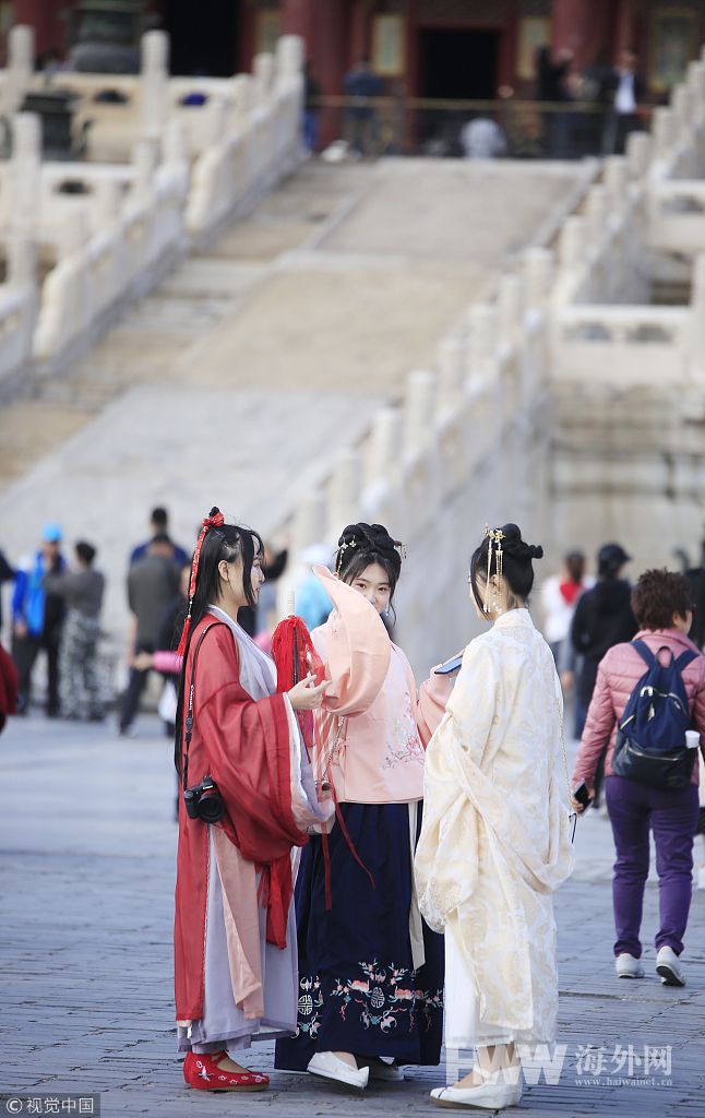 春暖花开之际 北京故宫兴起汉服热