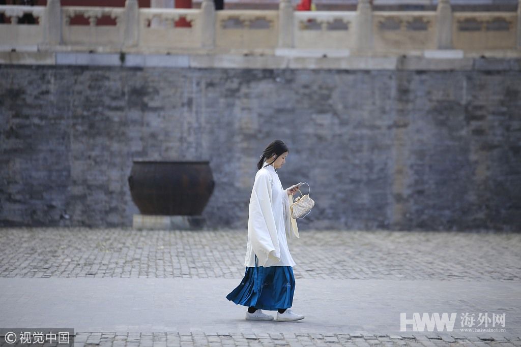 2019年3月31日,北京,仲春时节,春暖花开,身着各种样式汉服的小姐姐在故宫内游览。