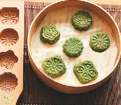 以前我们曾把清明点心做成月饼状,圆圆的,一面有花纹,记得我家有两个木头镂雕的模子,后来遗失了。还有一种做法是老家的人们所喜欢的:先把皮用擀面杖擀得薄薄的,然后一个圆片一个圆片印刻下来,像包饺子一样包,但接缝处交互掐进,形成非常有韵味的造型,典雅精致,惹人欢喜。