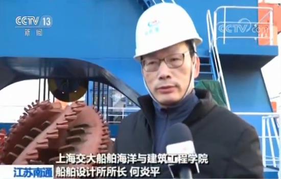 上海交大船舶海洋与建筑工程学院船舶设计所所长 何炎平:“这个就是一个绞刀,它是绞吸挖泥船最核心的一个装置,因为绞吸挖泥船和其它的船相比具有连续不断挖掘坚硬岩石的能力,这个能力就靠绞刀来体现。”