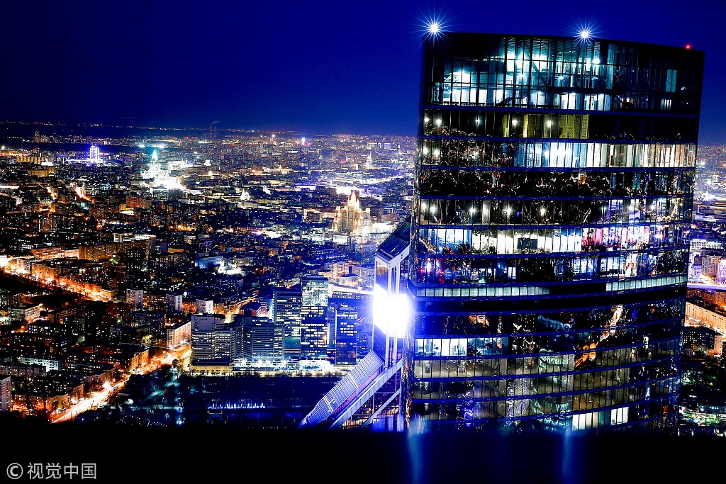 当地时间2019年4月2日晚,俄罗斯莫斯科,从莫斯科城市商业中心85层俯瞰莫斯科全景。