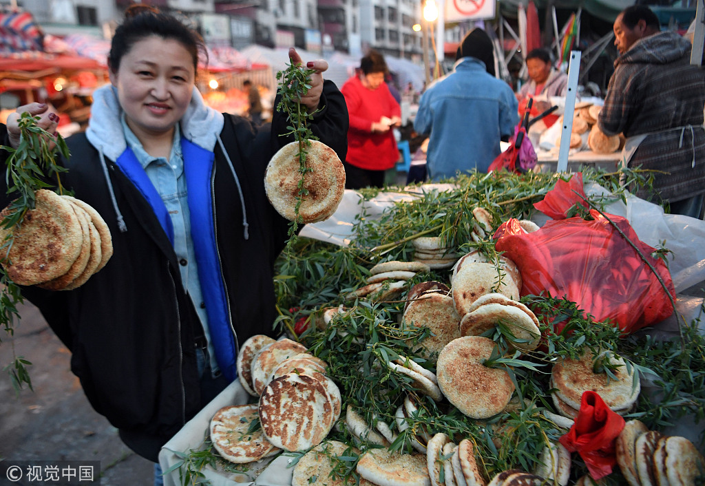 安徽亳州:清明民俗“柳条串烧饼”热卖