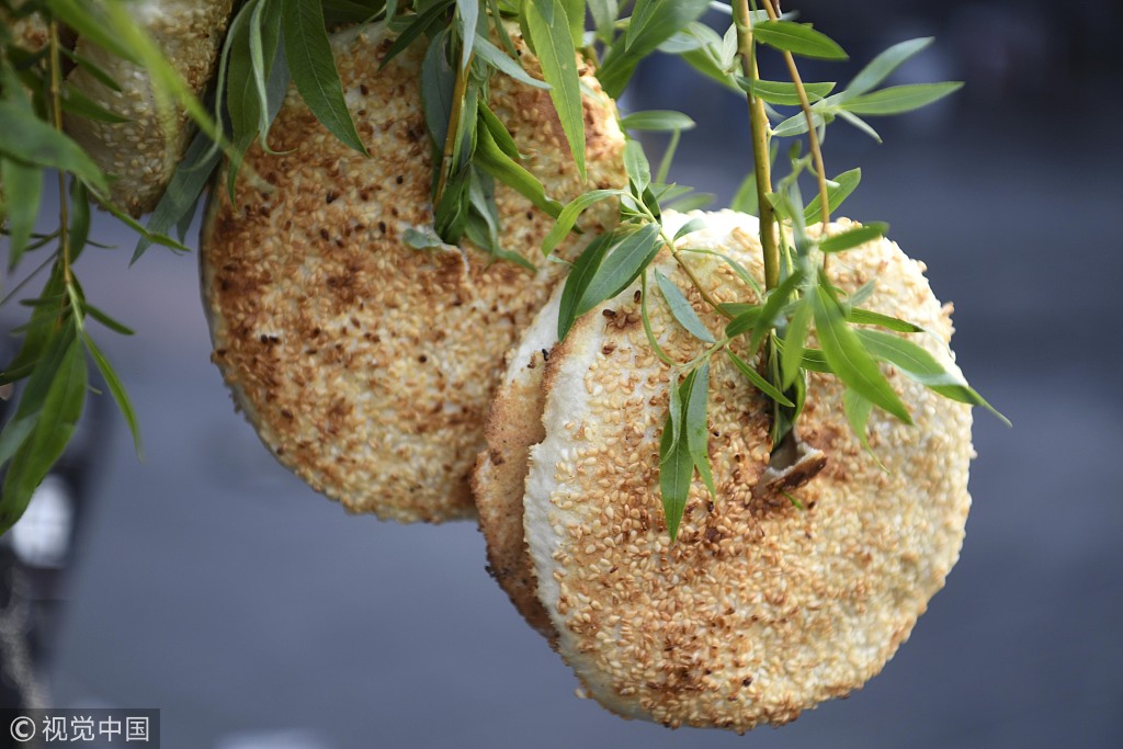 安徽亳州:清明民俗“柳条串烧饼”热卖