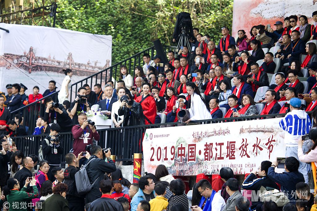 4月5日,四川都江堰举行放水节,重现两千年前“古法治水”情景。