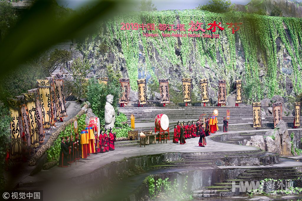 4月5日,四川都江堰举行放水节,重现两千年前“古法治水”情景。