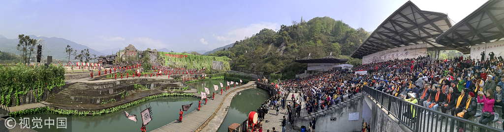 4月5日,四川都江堰举行放水节,重现两千年前“古法治水”情景。