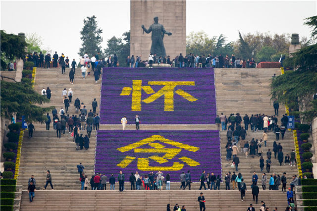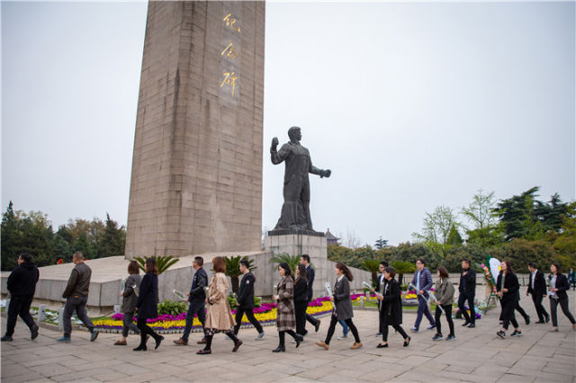 4月4日,人们绕南京雨花台烈士纪念碑一周,缅怀英烈。新华社发(苏阳 摄)