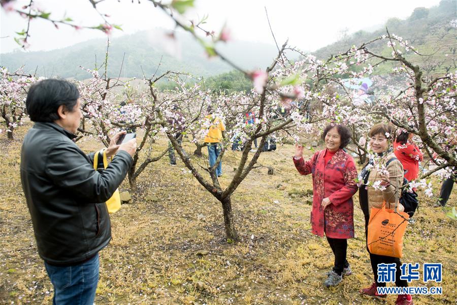 他的目的只是想让大家晚年生活不孤独,有问题也可以相互照应。 近两年过去,养老团的成员有进有出,陆陆续续换了四五户家庭。朱荣林说他和团员们通过“抱团养老”感到了充实和快乐。镇上的桃花节开幕,参加抱团养老的老人们前去观赏桃花(3月29日摄)。