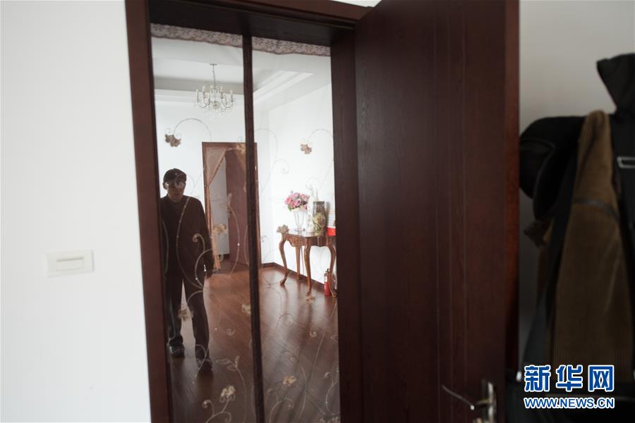 抱团养老的“团长”、80岁的朱荣林走向自己的房间(3月25日摄)。参加抱团养老的老人们平常都不关房门,以便相互照应。