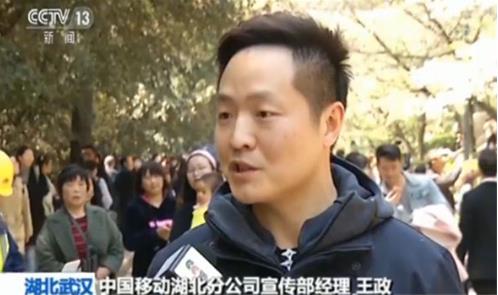 中国移动湖北分公司宣传部经理王政:我们利用CPE,也就是一个无线路由器的形式,将5G信号从基站接收下来,然后以无线WIFi的形式,来供给校园内所有的游人,以及我们做直播的媒体,它的下载速率可以达到1.1个G(每秒)。