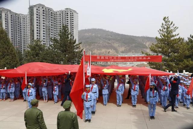 4月2日,延安红二十六军红军小学的师生,前往“四八”烈士陵园,举行祭扫活动。