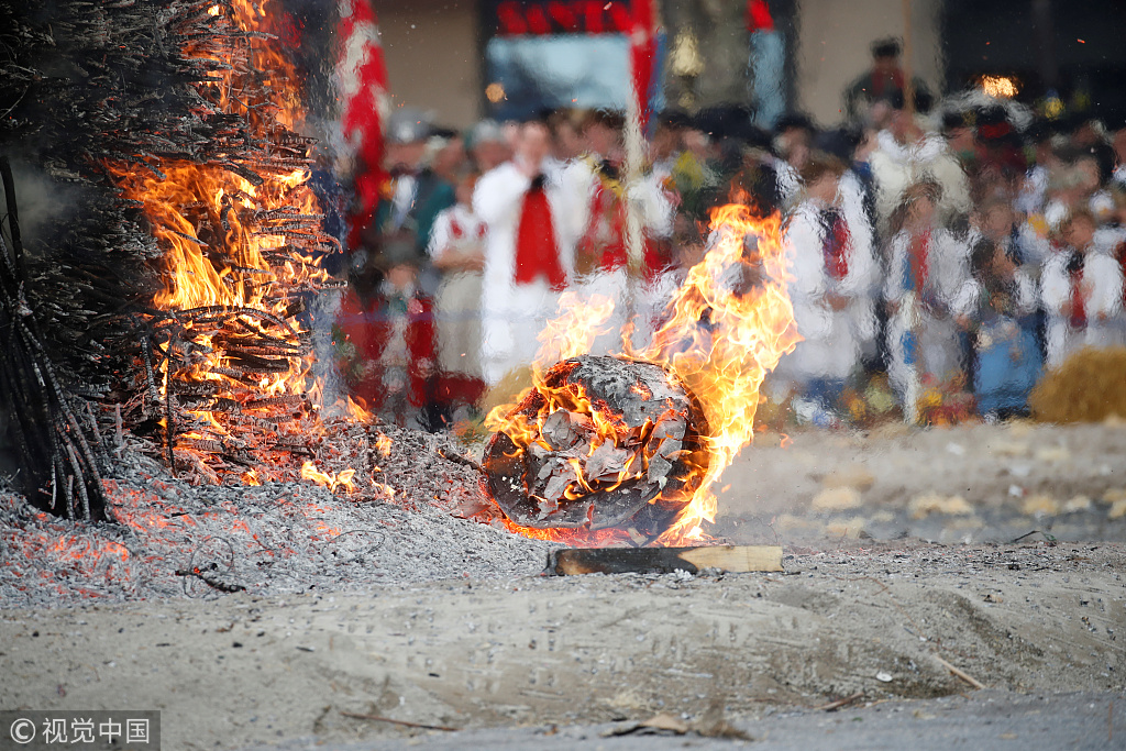 瑞士欢庆“送冬节” 焚烧“雪人”迎春来