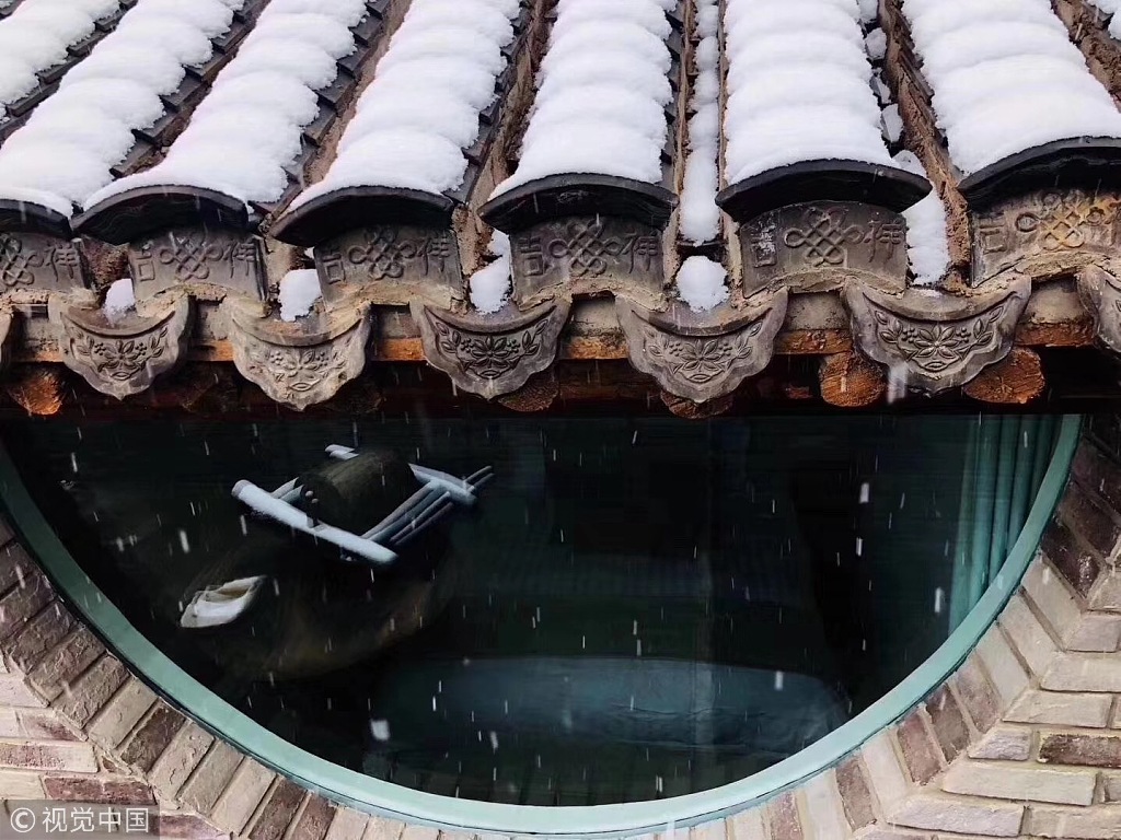 北京房山雪花纷飞景色迷人
