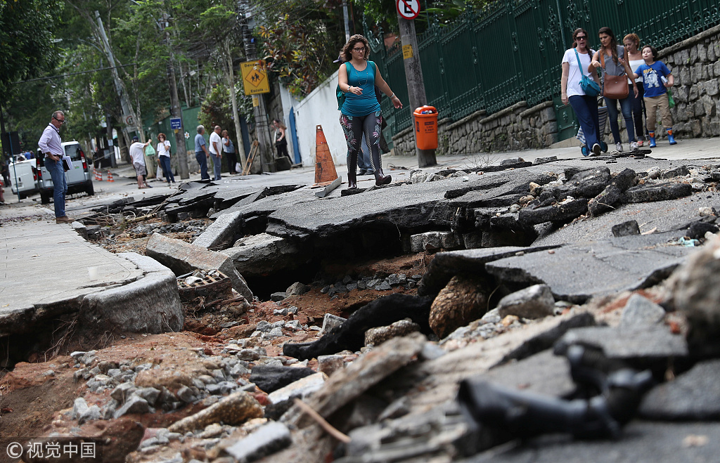 当地时间2019年4月10日,巴西里约热内卢,当地遭遇暴雨袭击后街道被毁。