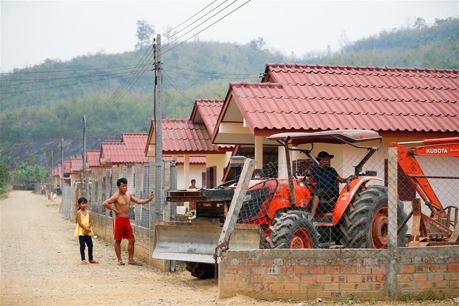 3月27日,在老挝琅勃拉邦省巴乌县,南欧江一级水电站附近的惠楼新村村民对住宅进行施工改造。新华社记者王婧嫱摄