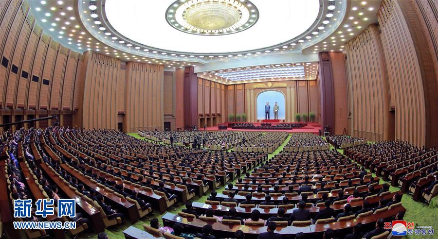 这张朝中社4月12日提供的照片显示的是11日举行的朝鲜第14届最高人民会议第一次会议现场。新华社/朝中社