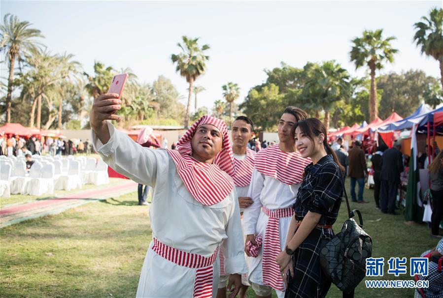 4月11日,在埃及首都开罗,人们在第四届“法老村”国际文化节上自拍。​ 新华社记者邬惠我摄