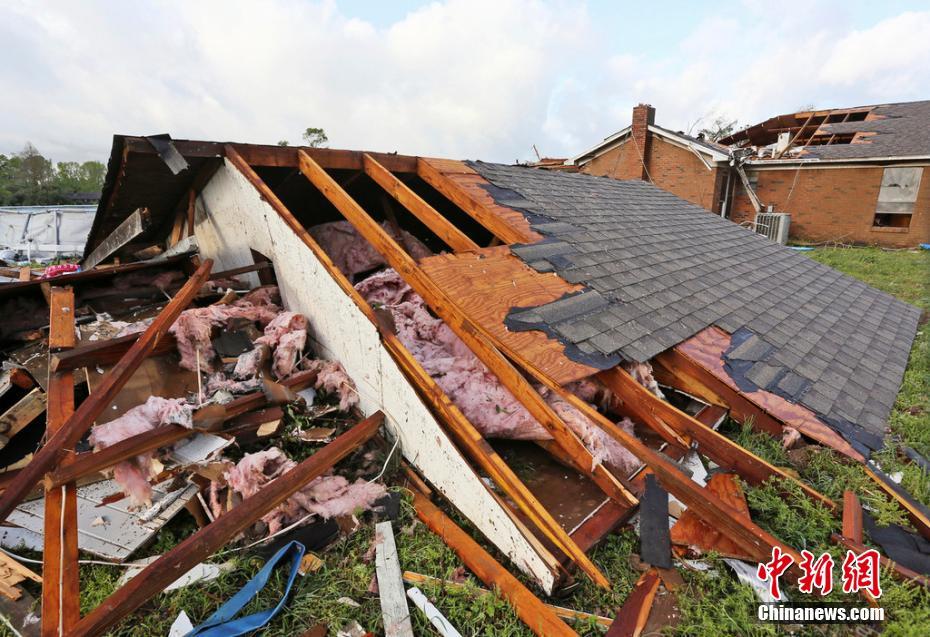 强风暴过境美国密西西比州 房屋被摧毁一片狼藉