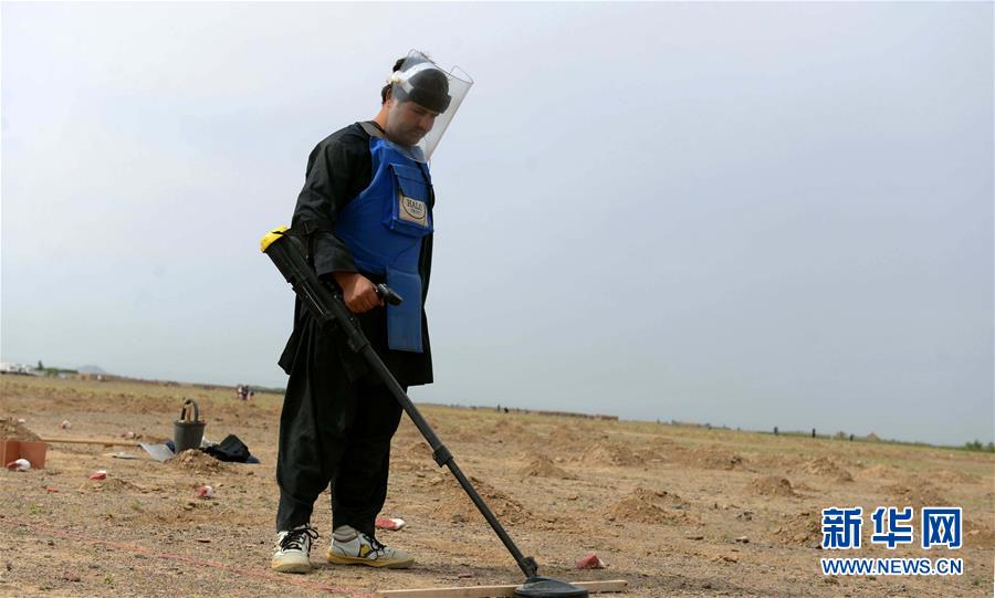 4月13日,在阿富汗坎大哈省,阿富汗排雷人员在执行排雷任务。 新华社发(萨纳乌拉·西奥姆 摄)