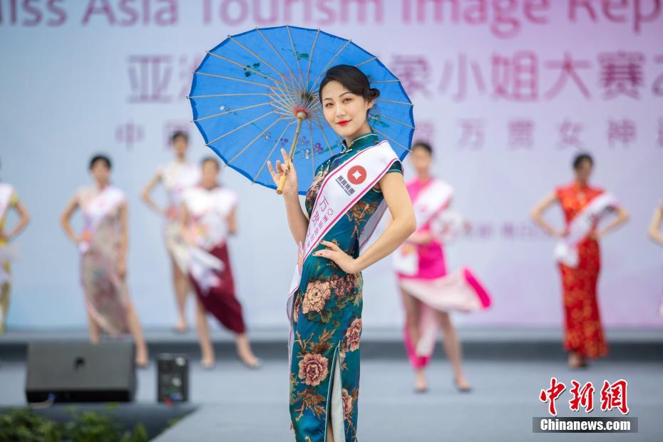 4月13日,2019亚洲旅游形象小姐大赛中国区直选赛在成都市青白江区举行,本次直选赛的冠、亚、季军选手将获得角逐2019亚洲旅游形象小姐大赛中国区总决赛的资格。经过多轮赛前选拔,来自全国28名佳丽通过旗袍秀、比基尼秀等环节的比拼,角逐此项赛事中国区总决赛的资格。图为旗袍展示现场。中新社发 青轩 摄