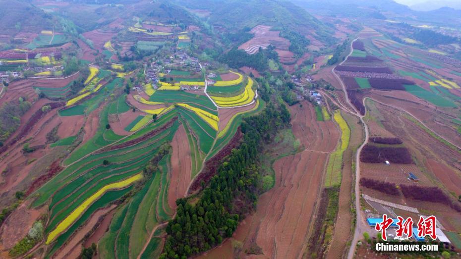 航拍四月“陇上江南” 田地绵延数里青山如黛