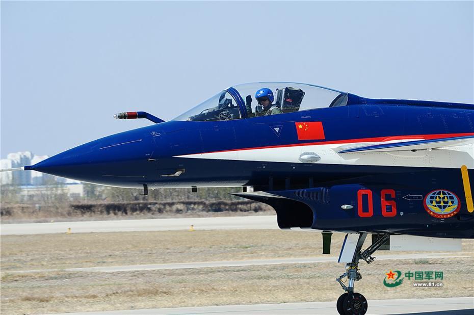 4月10日,飞行员驾驶飞机滑出机棚并做出自信的手势。柳军 摄 图片来源:中国军网