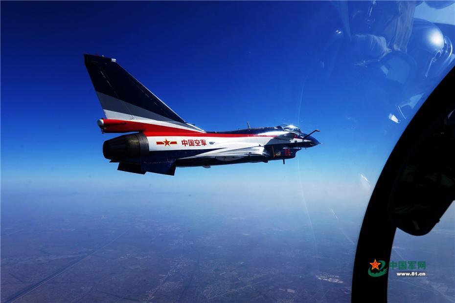 4月10日,歼-10表演机在空中向预定空域集结。柳军 摄 图片来源:中国军网