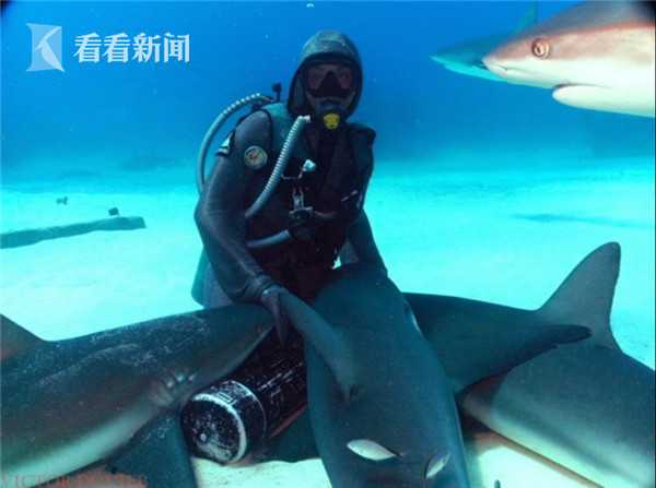 在加勒比海巴哈马群岛附近的的海湾,泽纳托穿上潜水服,然后一头扎进了海里,不一会儿,她的周围很快聚集起了一群加勒比礁鲨,但是这群鲨鱼没有咬它,反而温顺地在她身旁游来游去,让她抚摸。