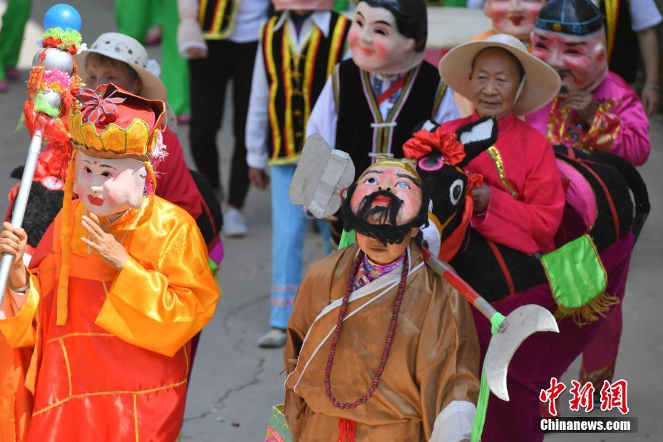 4月17日,市民身穿“西游记”人物服饰巡游。当日,昆明市晋宁区古城村举行传统“米线节”,当地民众敲锣打鼓,抬着“城隍”和“土主”塑像围村庄巡游。据了解,农历三月十三“米线节”是当地传统民俗节日。中新社记者 任东 摄