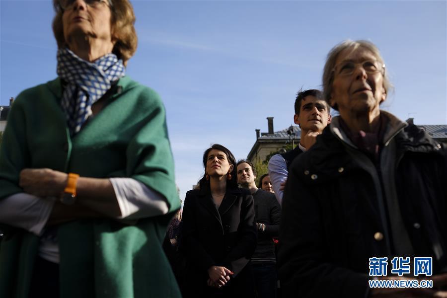 4月17日,在法国巴黎,人们聚集在一起为巴黎圣母院祈福。 法国负责调查巴黎圣母院大火的检察官雷米·海茨17日说,目前火灾原因主要指向“事故因素”。初步调查显示,倒塌的塔尖下方可能是最初的起火点。巴黎圣母院15日突发火灾,圣母院的屋顶和塔尖被烧毁,但主体建筑得以保存。 新华社发(亚历山大·卡曼摄)