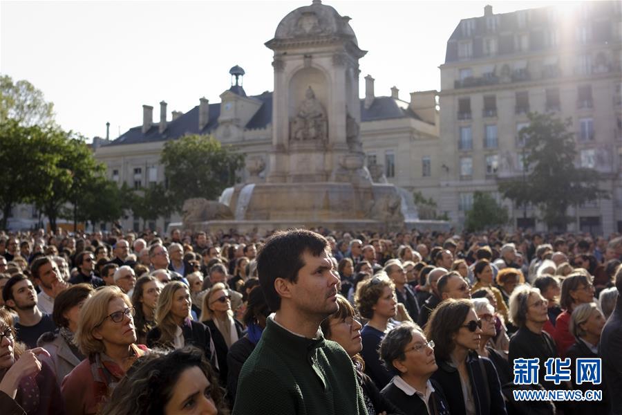 4月17日,在法国巴黎,人们聚集在一起为巴黎圣母院祈福。 法国负责调查巴黎圣母院大火的检察官雷米·海茨17日说,目前火灾原因主要指向“事故因素”。初步调查显示,倒塌的塔尖下方可能是最初的起火点。巴黎圣母院15日突发火灾,圣母院的屋顶和塔尖被烧毁,但主体建筑得以保存。 新华社发(亚历山大·卡曼摄)